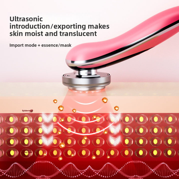 Answer 1: The device features micro-current technology for skin tightening and lifting, red and blue light therapy to combat acne and promote rejuvenation, and an ultrasonic function for deep pore cleansing and improved product absorption.